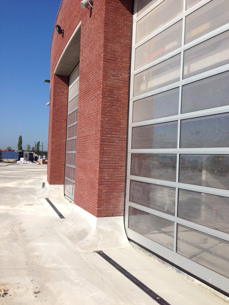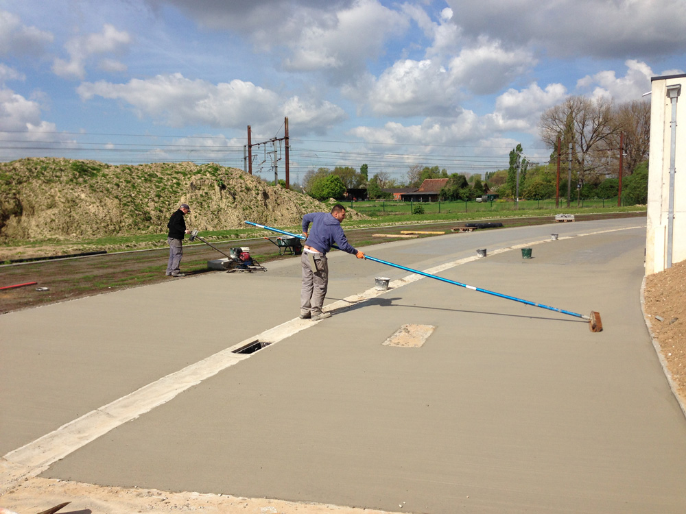 Samen met Nature Solutions legden we een 7.000 m2-grote betonpiste aan voor de nieuwe brandweerkazerne in Duffel. Onder de betonplaten werden kleimatten geplaatst om bodemvervuiling te voorkomen. Deze werden aangevuld met KWS-afscheiders voor oppervlaktewaterafvoer. Verder kregen alle parkeerplaatsen een waterdoorlatende verharding. De uitvoering gebeurde met grasdallen. Zo blijft de omgeving haar groen karakter behouden.